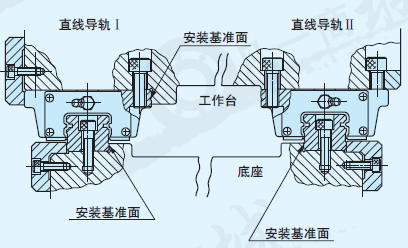 當需要直線運動的精度和剛性時,可設2處底座安裝基準面,1處工作臺安裝基準面,并按照下面的步驟安裝直線導軌