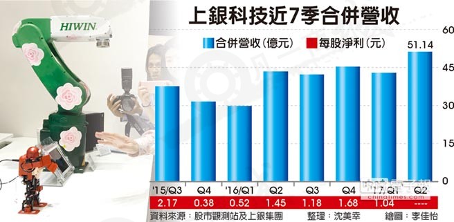 全球吹起工業(yè)4.0風(fēng)潮,對(duì)智慧自動(dòng)化設(shè)備及機(jī)器人需求殷切,全球景氣又逐步回升,帶旺上銀(2049)6月合并營(yíng)收攀升至17.71億元,創(chuàng)單月新高;第2季營(yíng)收創(chuàng)單季新高,上半年?duì)I收也創(chuàng)同期新高,表現(xiàn)優(yōu)于預(yù)期。上銀年底前訂單滿載,目前接單到出貨至少要等半年時(shí)間。