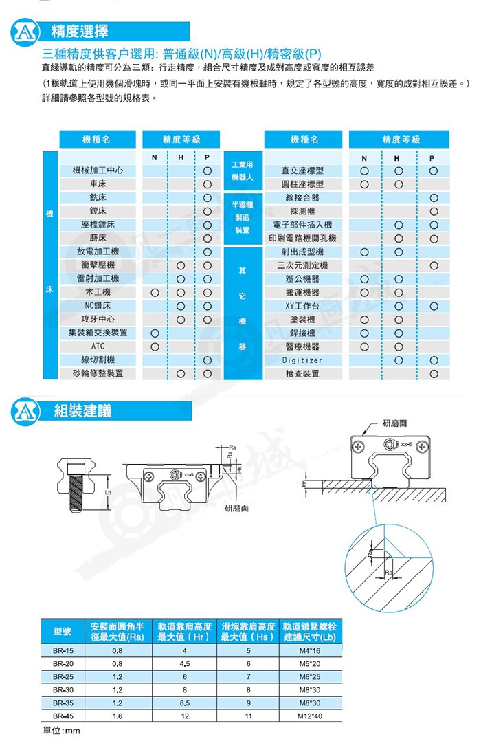 可同時承受上下左右方向的負荷由于直線導軌特殊的束制結構設計,可同時承受上下左右方向的負荷,不像滑動導引在平行接觸面方向可承受的側向負荷較輕,易造成機臺運行精度不良。