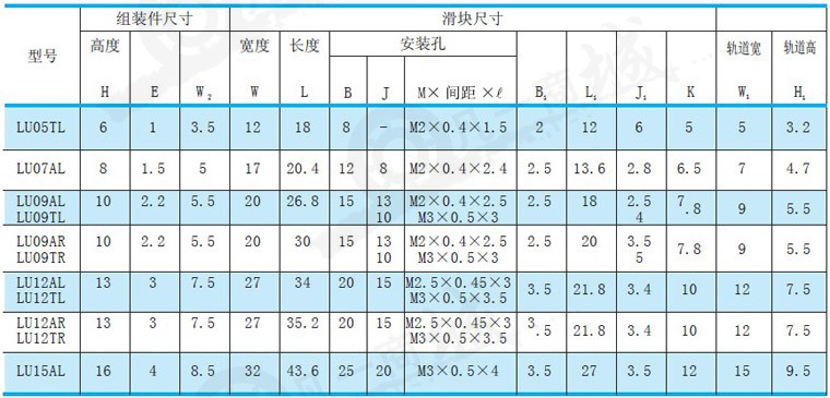 NSK導軌型號:PU05、PU07、PU09、PU12、PU15、PIU05、P1U07、P1U09、P1U12、P1U15
